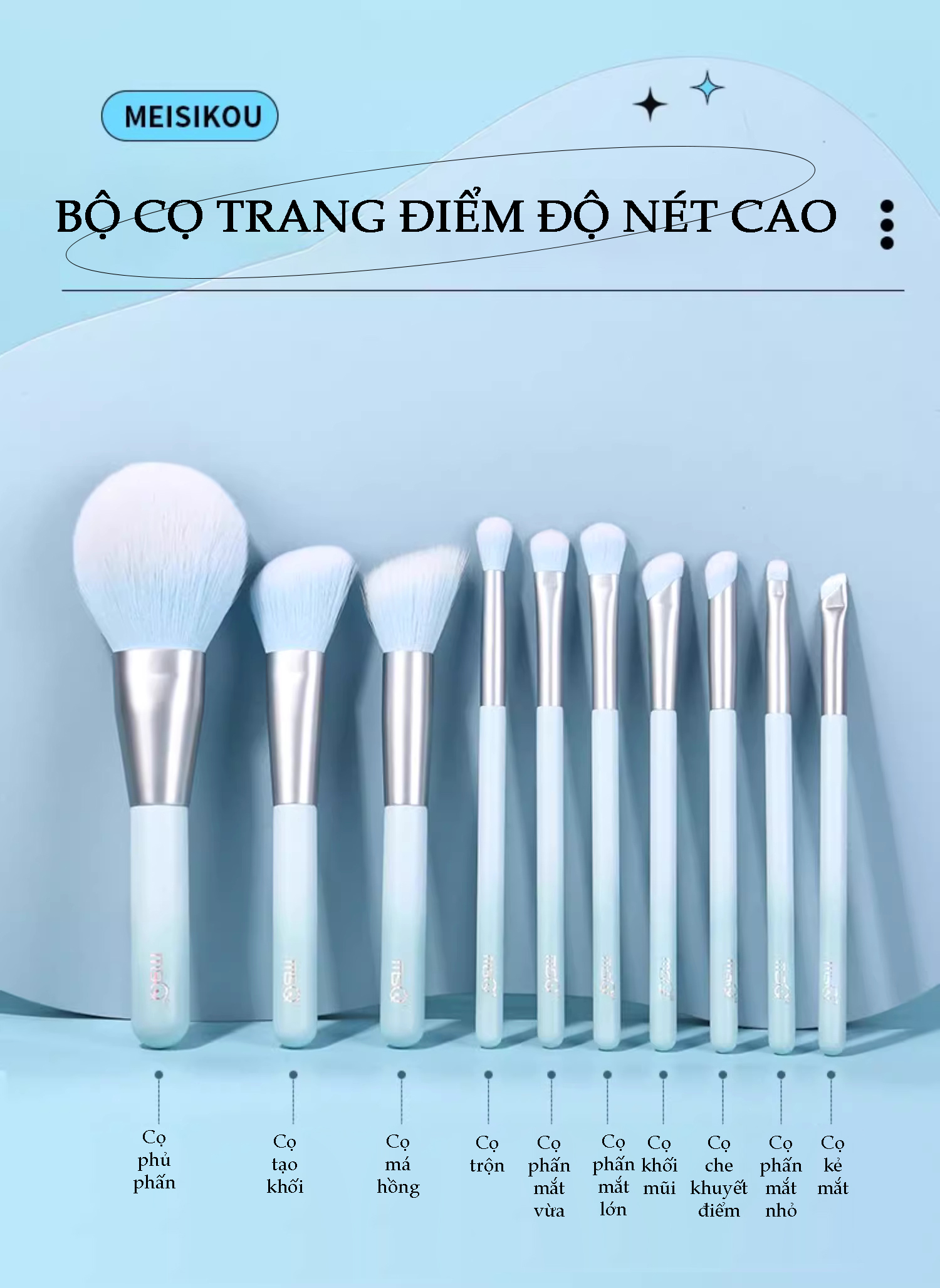 Bộ cọ trang điểm 10 cây blue makeup brush