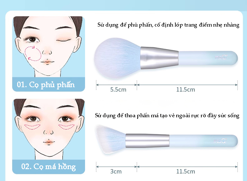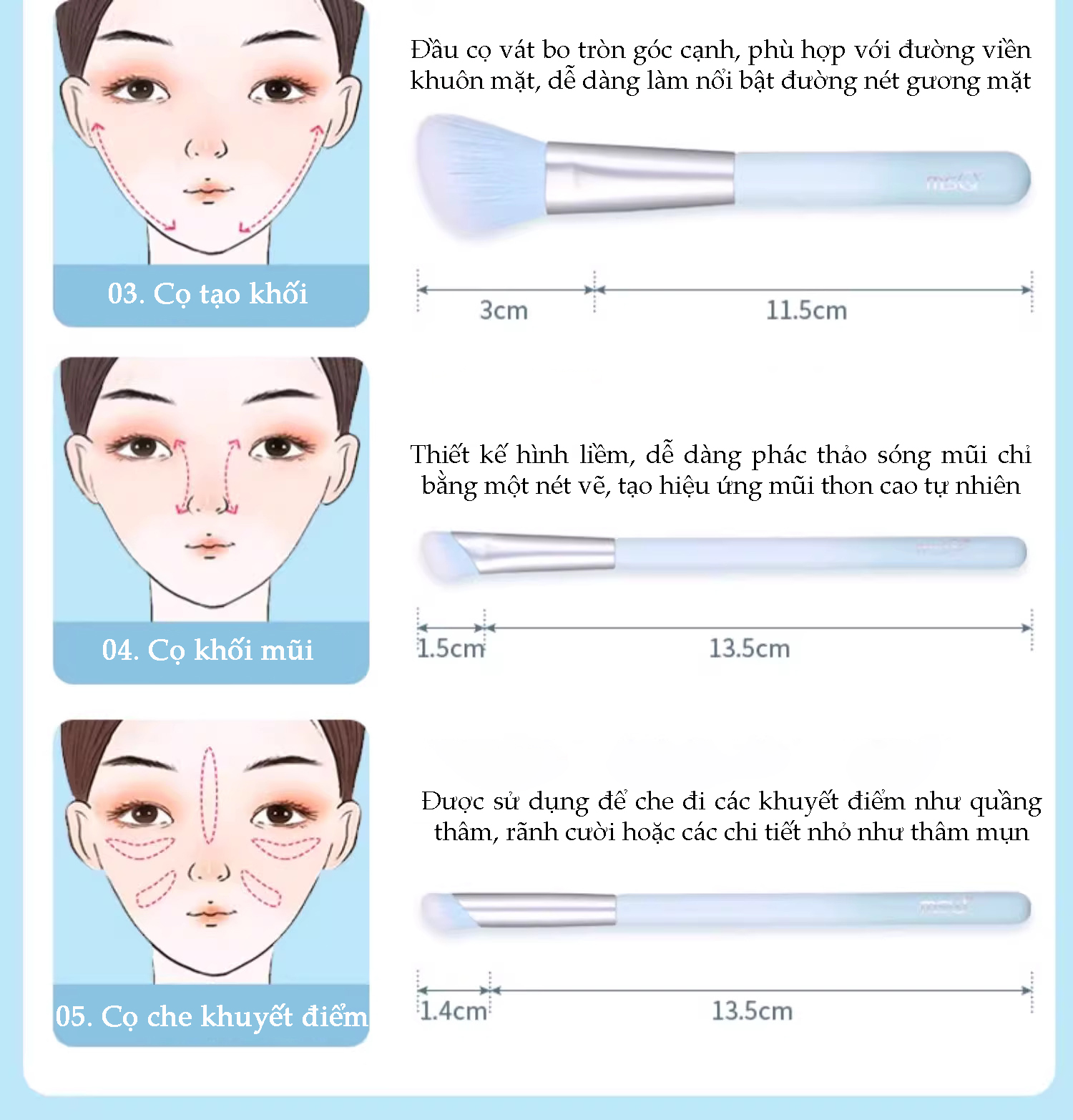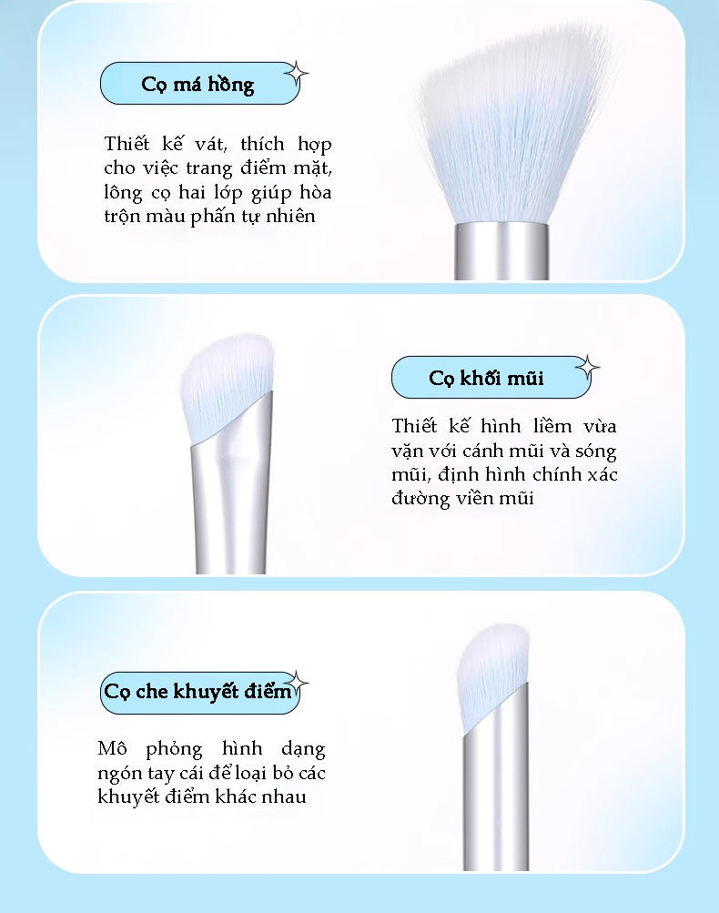 - Cọ tán má: Dùng cọ tán má để thoa má hồng lên gò má, làm cho khuôn mặt trở nên tươi tắn và rạng rỡ.