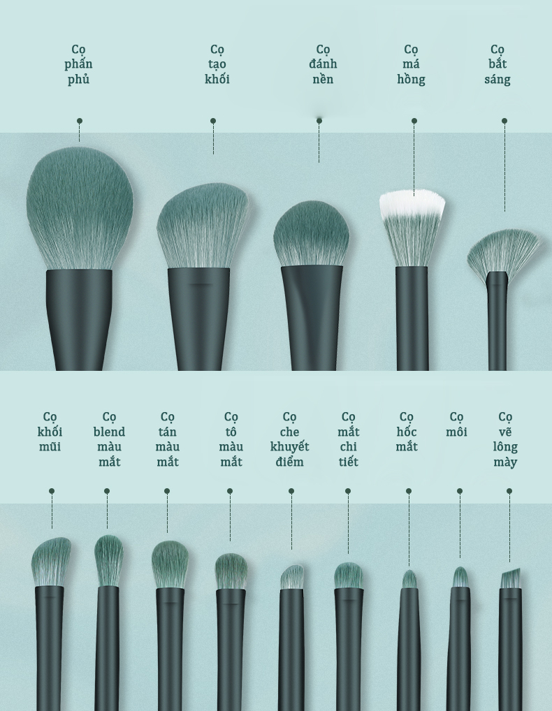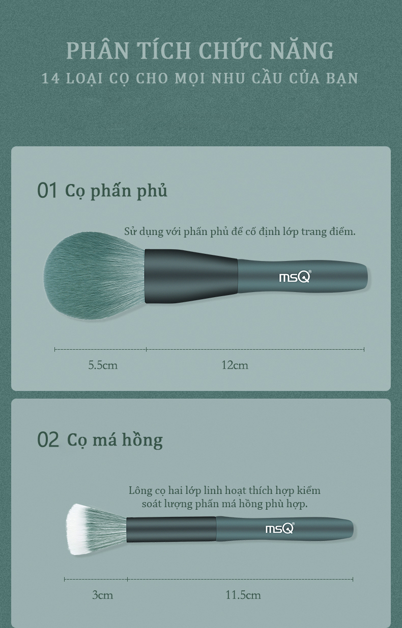 BỘ CỌ TRANG ĐIỂM MSQ 14 CÂY PLANTAIN bao gồm: